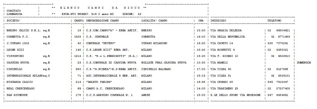 Campionato Primaverile Girone 22 |